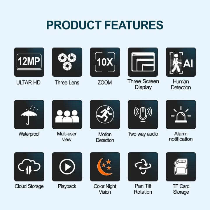 Three Lens Smart WiFi CCTV Camera: Panoramic Outdoor Security System